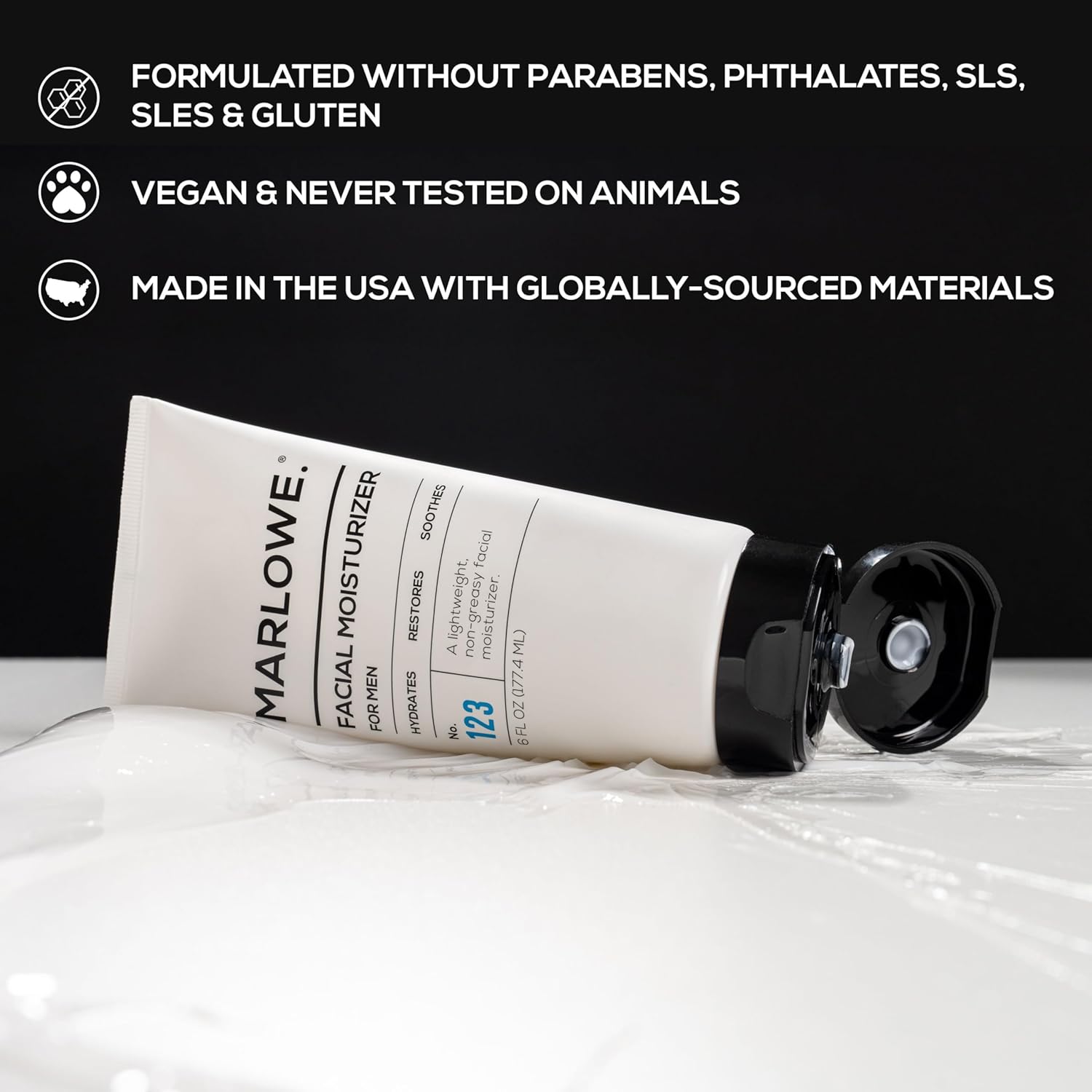 MARLOWE. No. 123 Facial Moisturizer 6 oz, Daily Face Lotion with Aloe Vera & Green Tea Extract, Hydrates, Nourishes, Restores & Soothes, Lightweight, Non-Greasy, Fresh Aloe Citron Scent