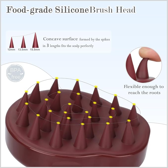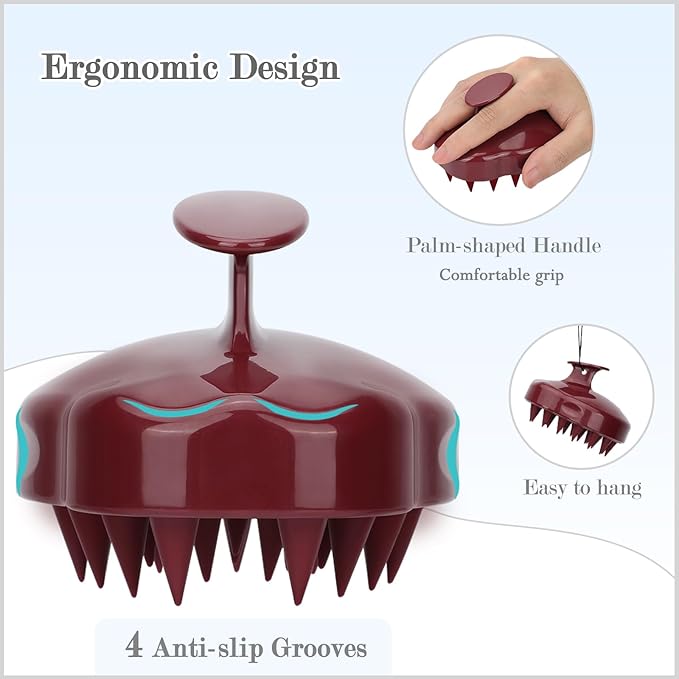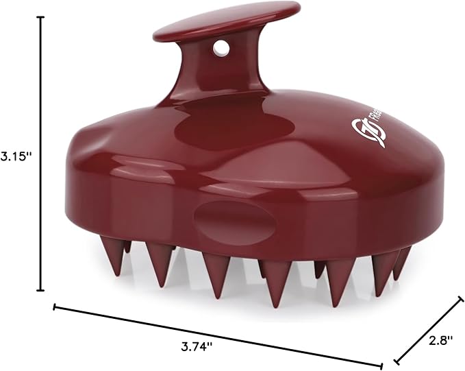 FREATECH Massager Shampoo Brush with Soft Silicone Bristles for Scalp Care, Shower Hair Scalp Scrubber Exfoliator for Dandruff Removal and Hair Growth, Wet & Dry for Men, Women and Kids, Red