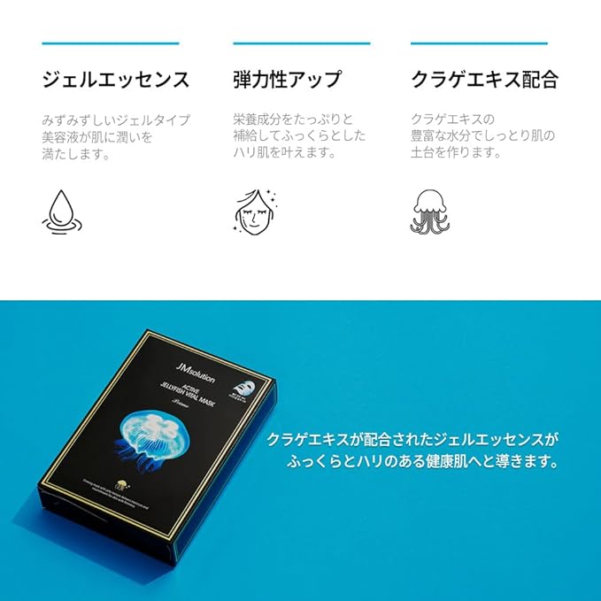 JMsolution Active Jellyfish Waterful Mask | Deep Hydration & Firming with Jellyfish Extract, Collagen & Hyaluronic Acid | 33ml Essence | Korean Sheet Mask | 10 Sheets