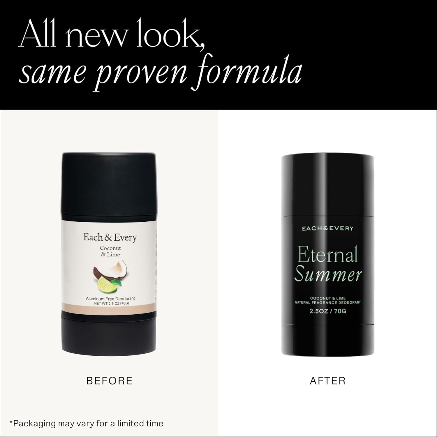 Each & Every Aluminum Free Deodorant for Men & Women - All Natural Deodorant for Sensitive Skin, EWG Verified - Clean, Baking Soda-Free, Plant-Based Fragrance, Coconut & Lime, 2.5oz