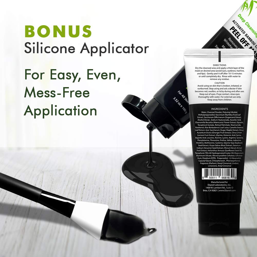 Ebanel Charcoal Peel Off Face Mask Applicator Set, Deep Pore Cleansing Minimizer Blackhead Remover with Niacinamide, Hyaluronic Acid, Vitamin C, Green Tea, Deep Cleanse Black Masks Peel Off Gel Mask
