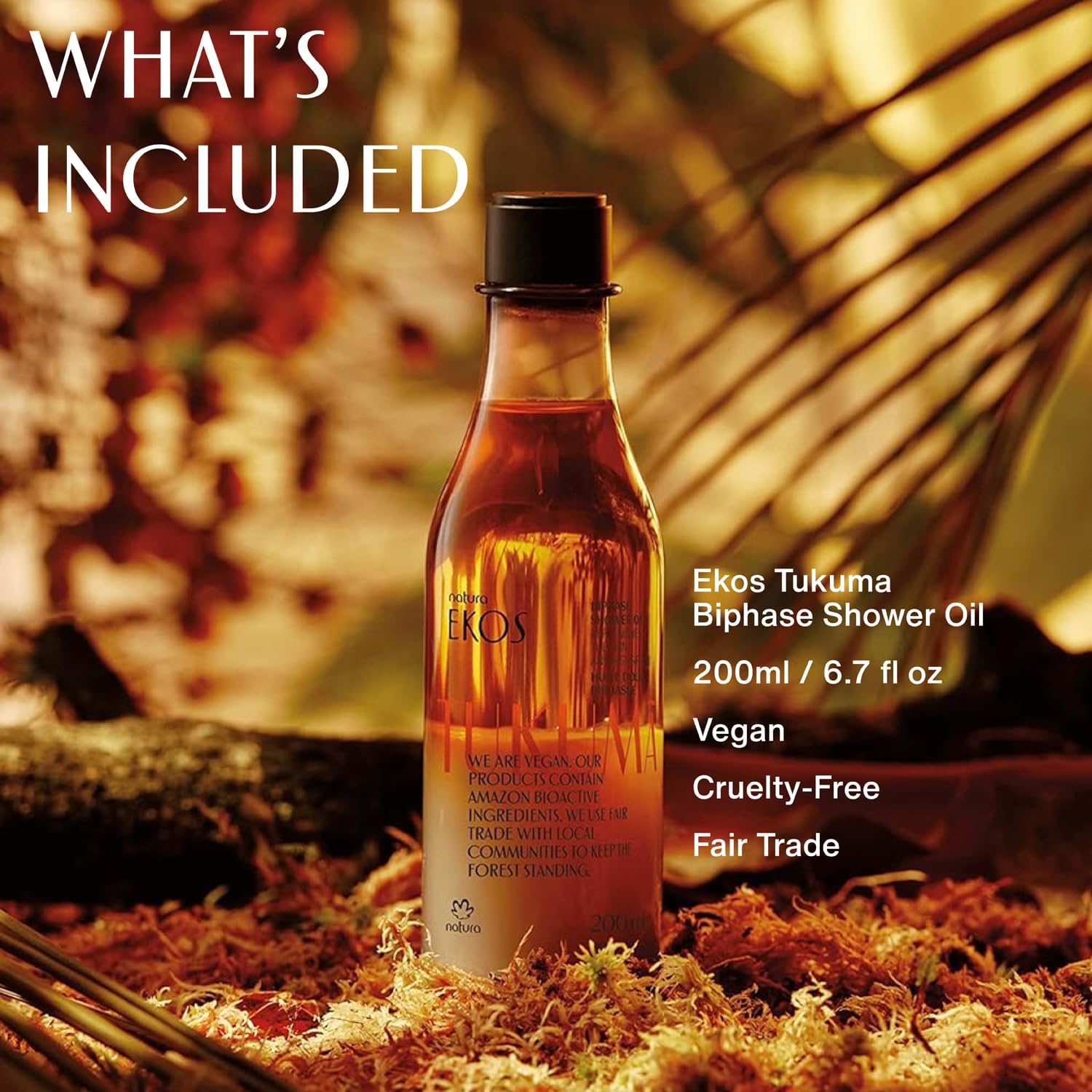 natura - Ekos Tukumã Biphase Shower Oil - Replenishing In-Shower or Bath Body Oil - Anti-Signs - Scented - Bath Oil - Skin Moisturizer - Vegan Skin Care - Brazilian Beauty Secrets - 6.7 fl oz (200ml)