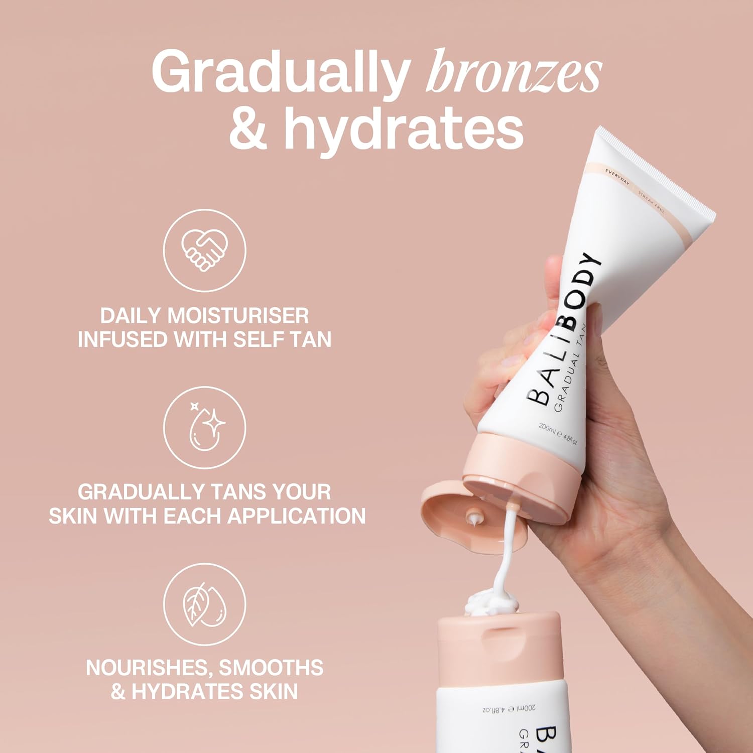 - Product Benefits : It’s our bestselling self tan formula in an everyday body lotion. This game changing product combines a deeply hydrating moisturiser with fake tan. Leaves you with that Insta famous Bali Body tan, no sun required. It’s our bestselling self tan formula in an everyday body lotion. This game changing product combines a deeply hydrating moisturiser with fake tan. Leaves you with that Insta famous Bali Body tan, no sun required.
