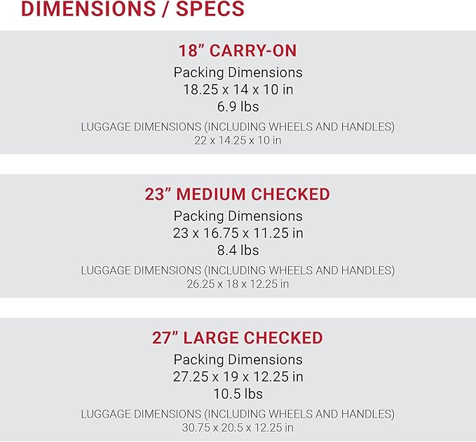 - 3-Piece Expandable Luggage Set: This rolling suitcase set includes 18-inch, 23-inch, and 27-inch suitcases, making it perfect for 2-3 week trips; Loaded with convenient, space-saving features that let you pack all your travel essentials without the extra bulk