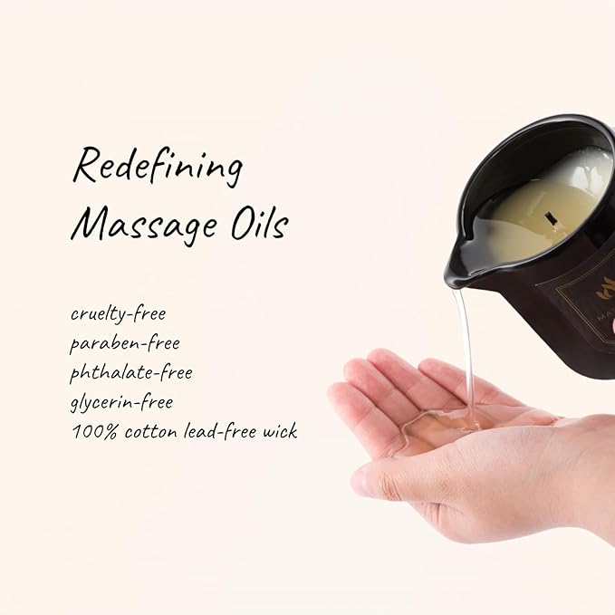 - ✅ 4-in-1 MASSAGE CANDLE - The perfect massage candle that acts as a scented candle, massage oil, body oil and lotion all in one! Enhance your home spa experience with this ultra moisturising formula that leaves your skin hydrated, nourished and super soft. The essential oil absorption after massage is never greasy and naturally nourishes your skin for a 24-hour lasting treatment.