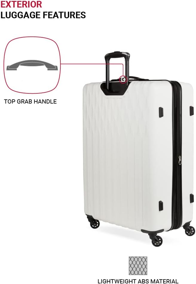 SwissGear 8018 Hardside Expandable Luggage with Spinner Wheels, White, 3-Piece Set (20/24/27)