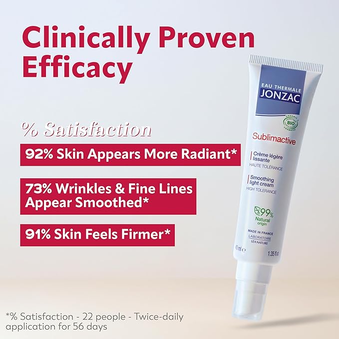 JONZAC Eau Thermale Sublimactive Organic Anti-Aging Smoothing Light Cream for Women - Firms and Smooths Skin - Light Texture - Natural Skin Care - Safe for Sensitive Skin - 1.35 fl oz