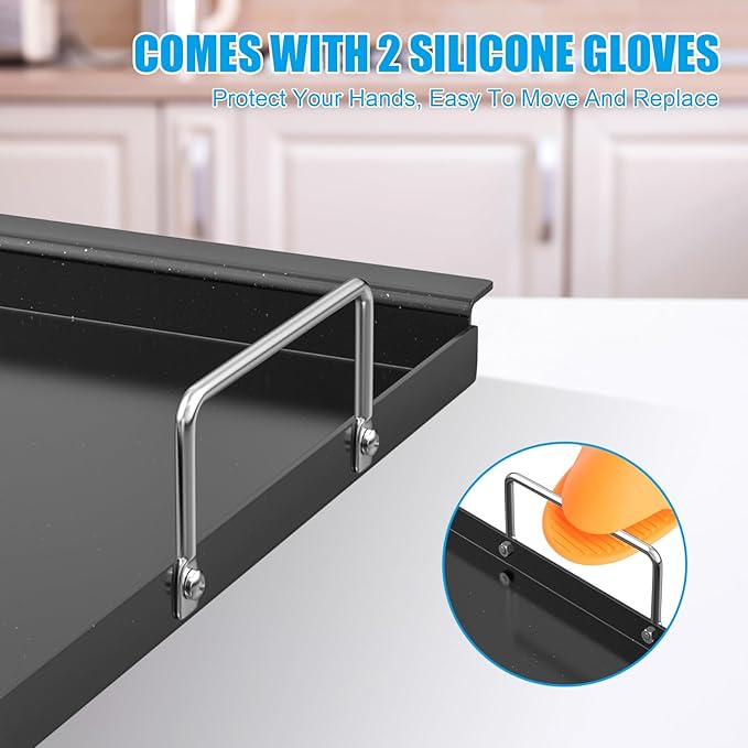 - [Convenience Meets Practicality]- The design of this griddle is super practical! You'll love the dual handles and silicone oven mitts for easy maneuvering and safe handling. The griddle insert also comes with features like grease channels, and grease holes that make cooking less messy and easier to clean up afterwards. Talk about win-win!