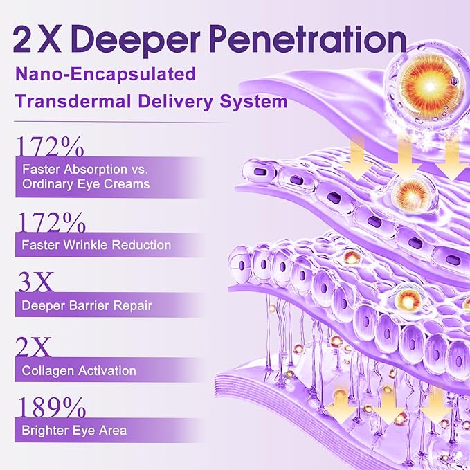 - 2X Anti-aging Benefits:Nano-capsule technology encapsulates our effective ingredients in molecules smaller than 50 nm, delivery deep into the dermis layer of the skin and achieving 2X effect of reducing wrinkles and hydration lock