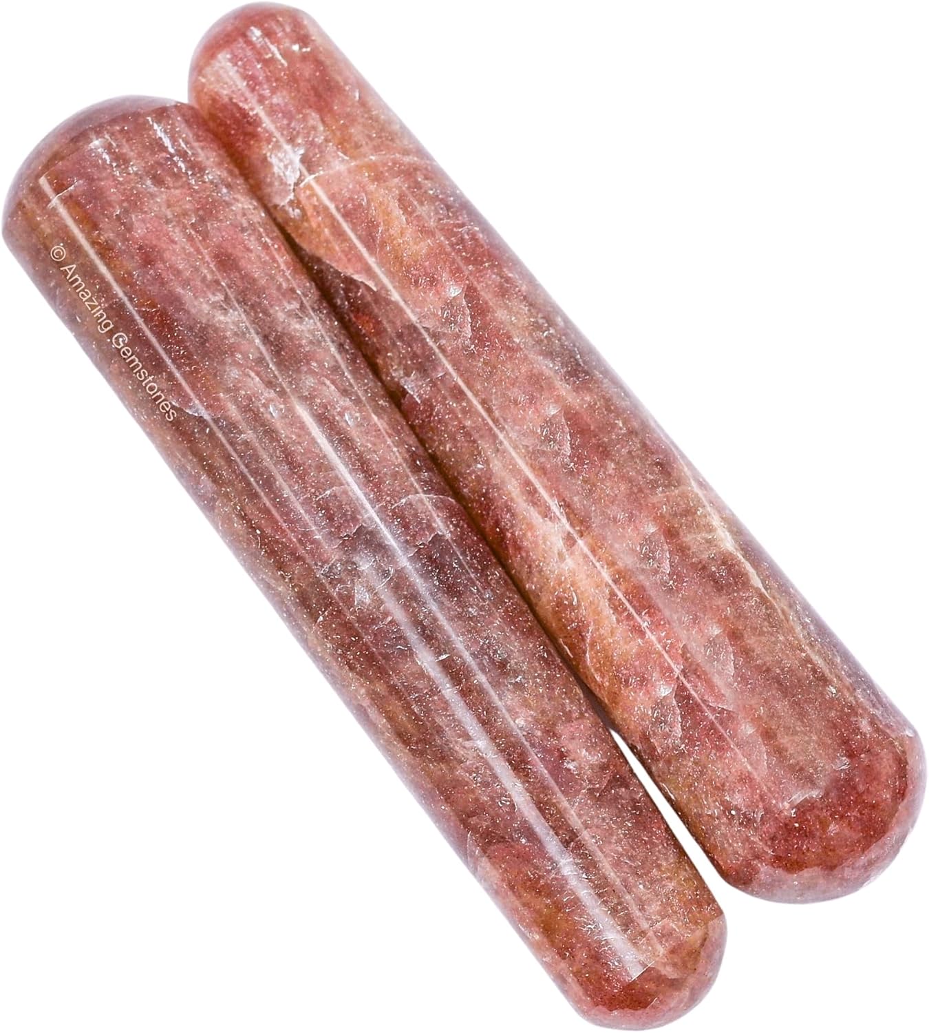 Amazing Gemstone Strawberry Quartz Crystal Wand Massage Stick - Pelvic Wand Gua Sha for Adults - Crystals and Healing Stones Massage Wands for Adults Gifts (Smooth)