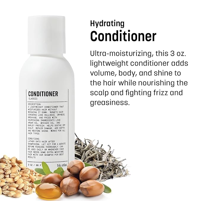 Blu Atlas Travel Size Shampoo & Conditioner Set for Men – TSA Approved, 3 oz Each – Natural, Sulfate-Free, Paraben-Free – Clean Ingredients – Classic Scent – Made in America