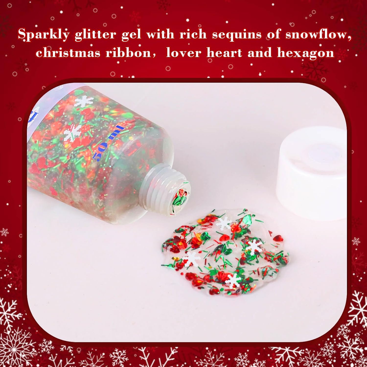 - For Multiple Uses: Each bottle of our Christmas hair glitter contains 50ml of glitter gel, providing plenty of product for numerous applications. A little goes a long way, so you can create stunning looks again and again. Whether you're adding a subtle sparkle or going all out with a full glam look, this glitter gel will make sure you have enough to shine through the entire holiday season and beyond.