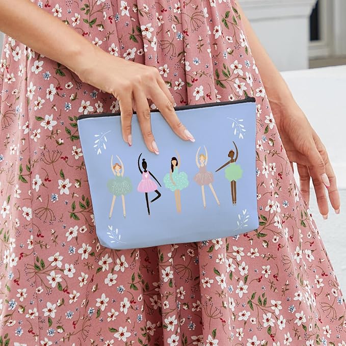 fkovcdy Dance Bag, Ballerina Makeup Bag, Dance lover Gifts, ballet Cute Small Cosmetic Bag, for dancing dancer recital gift birthday Christmas graduation travel Gifts. blue