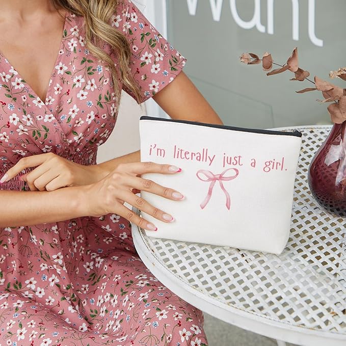 fkovcdy Pink Bow Makeup Bag for Girls, I'm Literally Just A Girl, Cute Bow Gift for Women, Small Bow Lover Travel Cosmetic Bag Zipper Pouch for Daughter granddaughter for Birthday Christmas 2