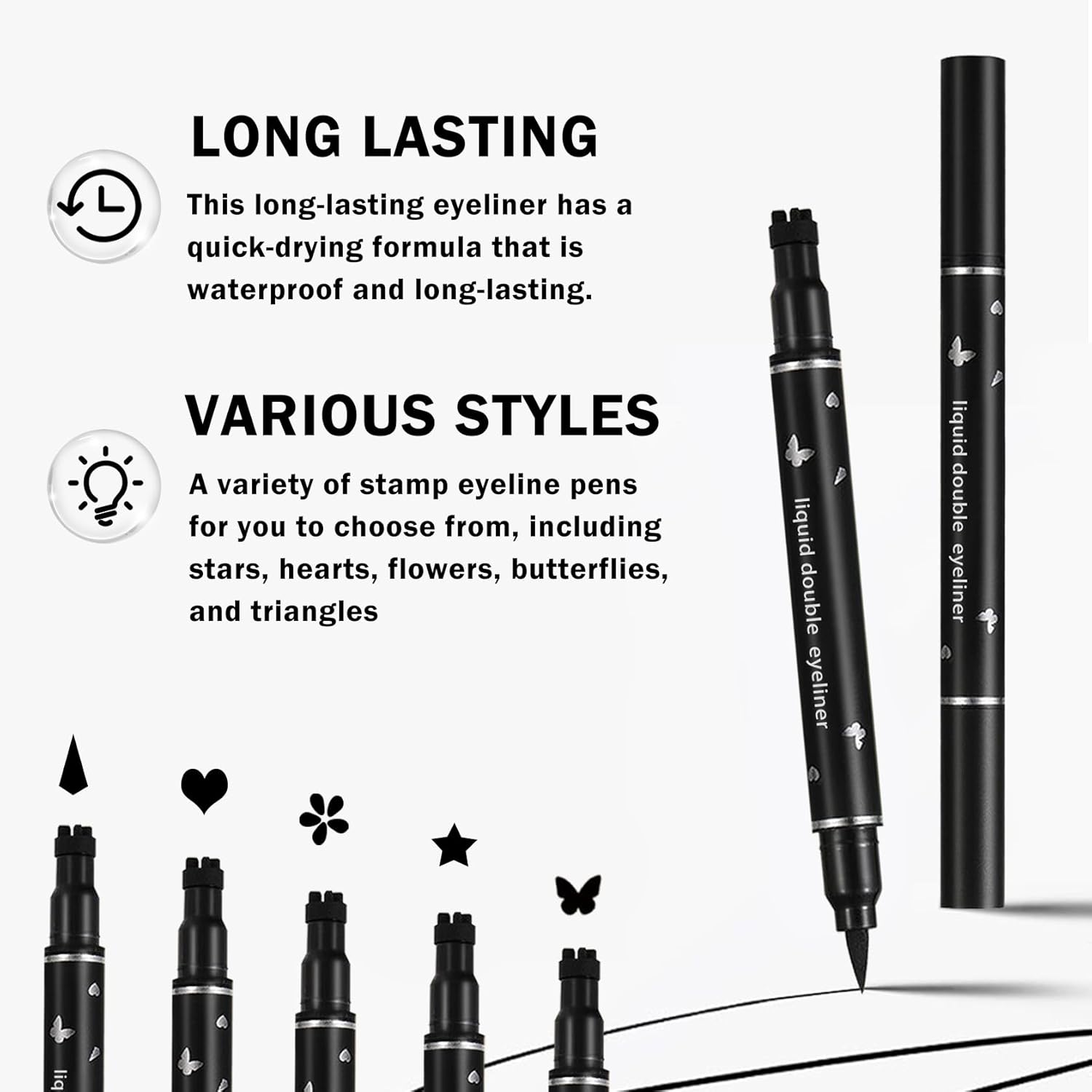 - DOUBLE-HEADED DESIGN: Eyeliner stamp adopts double-headed design, one side is a delicate eyeliner, the other side is a creative stamp, which can easily draw precise and smooth eyeliner, helping you create different styles of eye makeup
