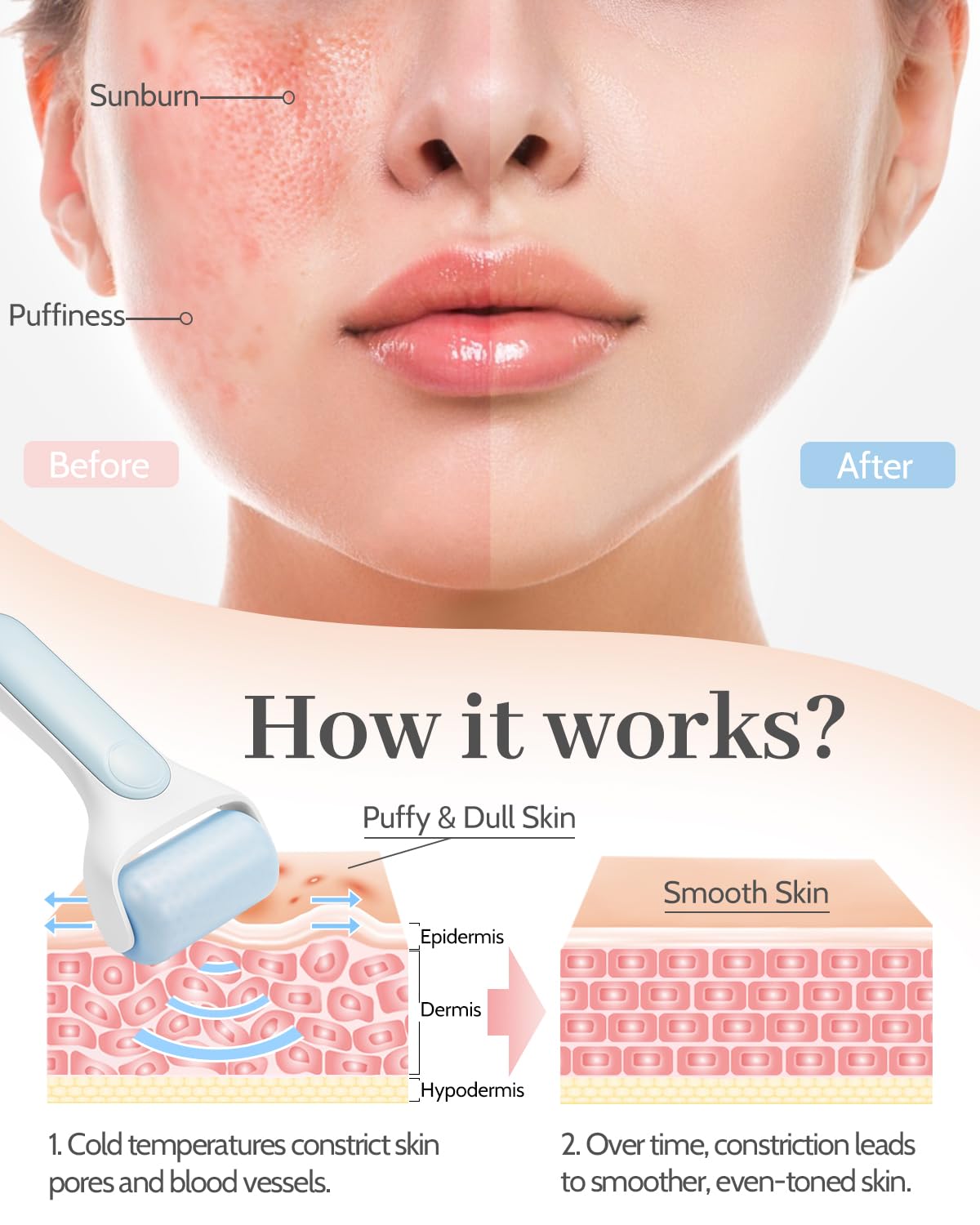 - Versatile Skincare Essential: Beyond tackling morning eye bags, its cooling effect lasts long enough for a full treatment, effectively soothing redness, swelling, and irritation on the face or body. The ice face roller boosts facial blood circulation and accelerates serum absorption, making it great for both at-home spa sessions and travel