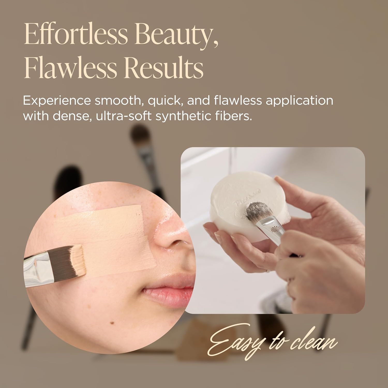 - Soft Synthetic Bristles for Flawless Finish Made with high-quality synthetic fibers, this soft makeup brush glides gently over the skin without streaks or clumping. Perfect for achieving a natural yet high-coverage base for everyday and professional makeup