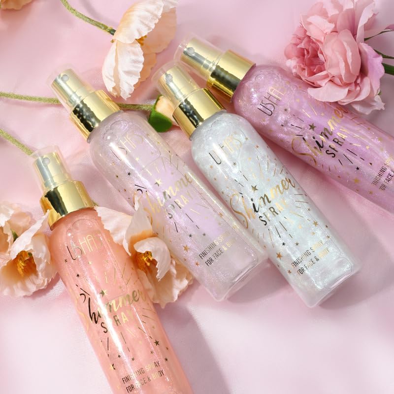 USHAS Body Glitter Spray 3.72 fl.oz - Temporary Body Shimmer Spray for Face, Hair, Clothing, Long Lasting Quick-Drying Shiny for Music Festival Rave (02)