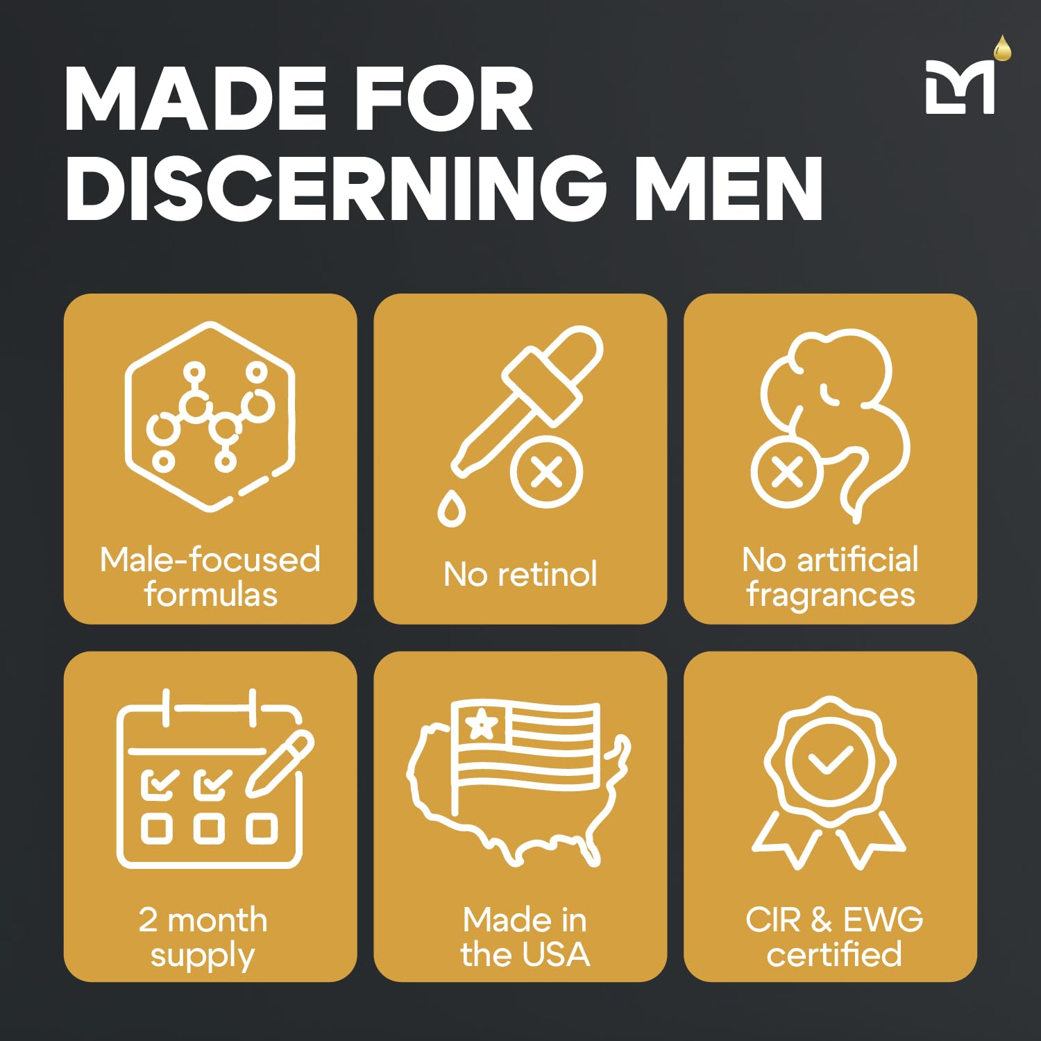 - Higher Standards in Men's Facial Skin Care: All of our men's face care kit formulas are engineered and made right here in the USA; We made sure all our men's facial skin care sets & kits ingredients pass the highest safety standards from both CIR and EWG – the top authorities in skincare safety