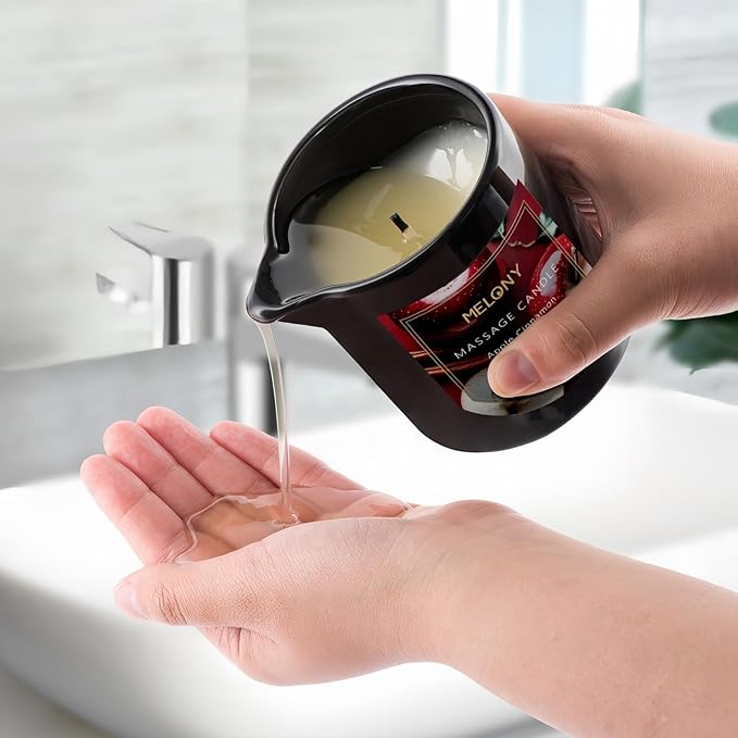 MELONY Luxury Massage Candle - Moisturising, Body Oil Candles for Muscle Relaxation, Home Spa, 8.1OZ (Apple Cinnamon)
