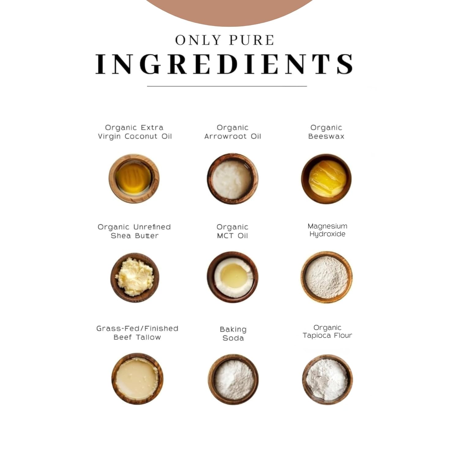 - Nourishing Natural Ingredients: Thoughtfully formulated with 100% grass-fed beef tallow, organic extra virgin coconut oil, unrefined shea butter, and beeswax. Each ingredient is carefully selected to support your skin's natural balance and provide gentle care.