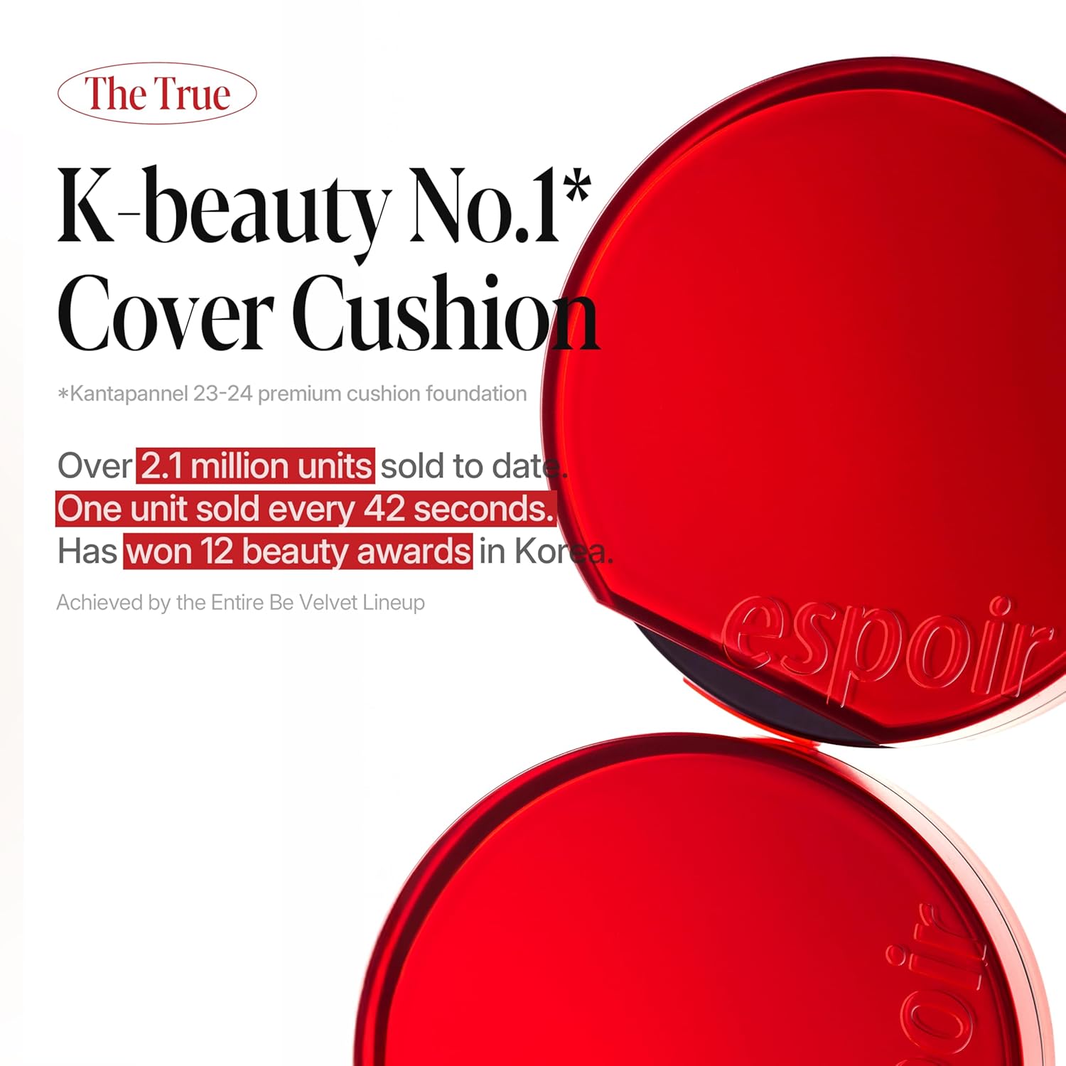 espoir [NEW] Be Velvet Cushion Foundation | Quick and Easy Coverage with Long-lasting Color by Zero Oxidation (#28.5 Ginger Olive, 0.46 Ounce (Pack of 1))