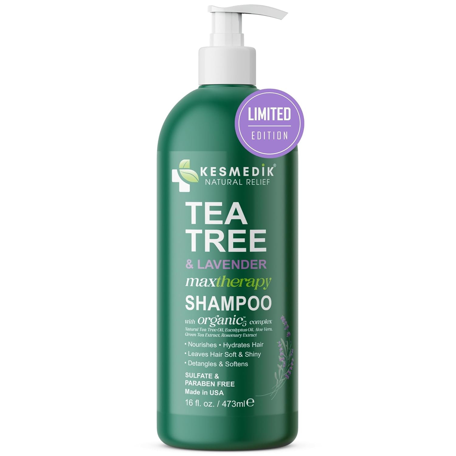 Tea Tree Lavender Shampoo with Mint & Rosemary, Cleanses, Cools & Soothes Dry, Itchy Scalp, Sulfate & Paraben-Free, For All Hair Types 16 fl oz
