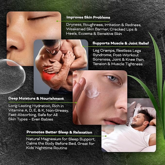 Beef Tallow for Skin, Face & Body Balm with Magnesium for Sleep, Leg Cramps & Pain, Muscle Relaxation, Moisturizing Topical Cream - Organic Grass-Fed & Grass-Finished Tallow, Manuka Honey Lotion