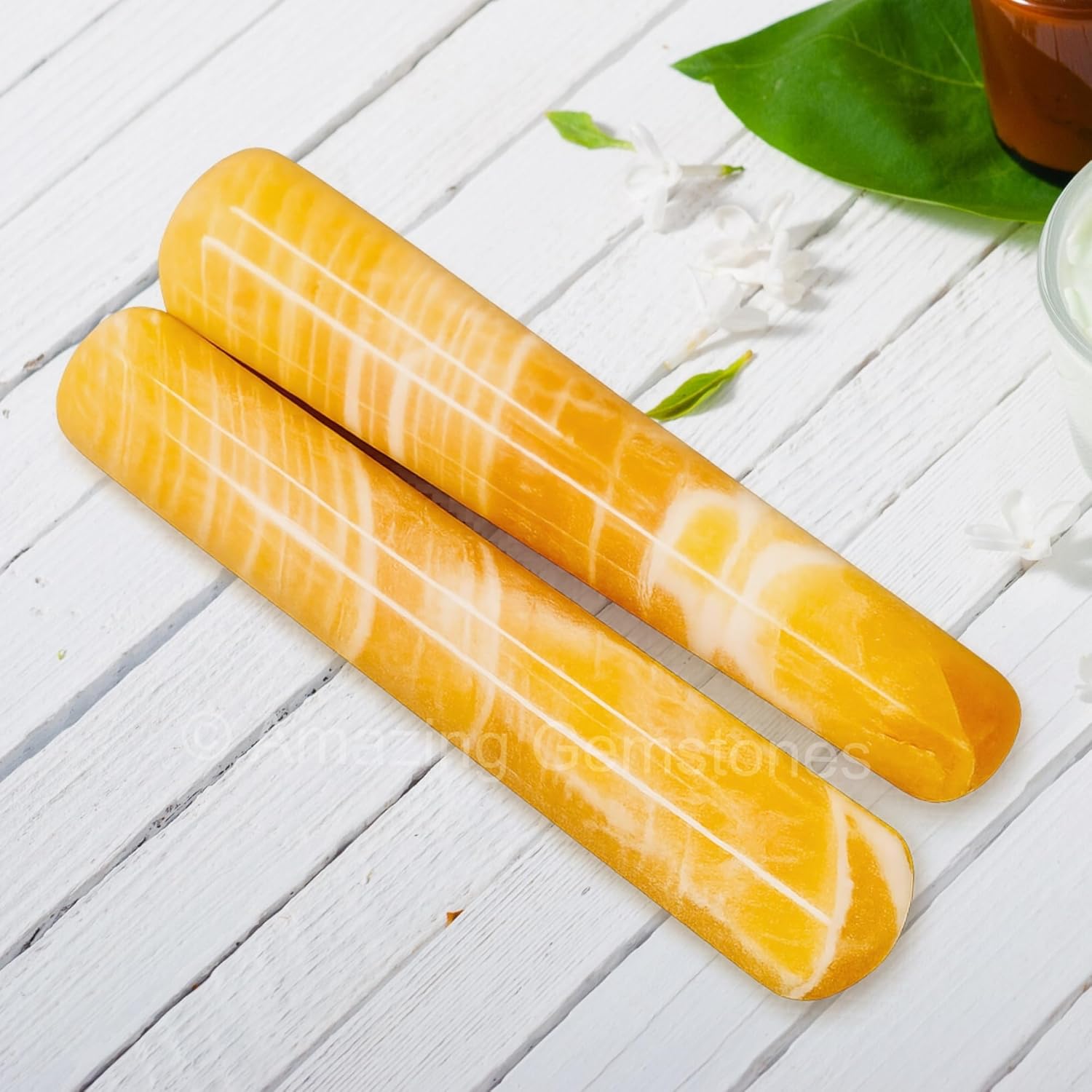 - Natural Healing Crystal Wand - This yellow calcite massage stick is infused with the natural energy of crystals to enhance your massage experience and are hand crafted, quality checked, earthly mined, organic and authentic.