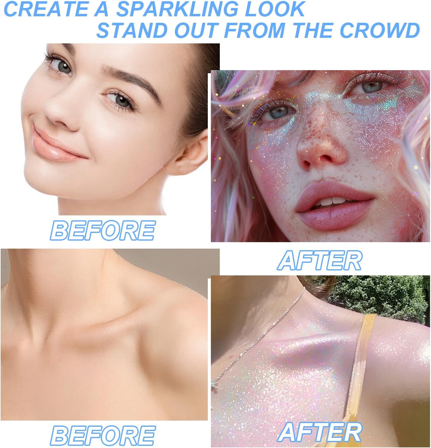 - Versatile Sparkle: Our body glitter spray for women is your go-to for adding shine anywhereโhair, face, neck, legs, or even your outfit! Perfect for Mardi Gras, St. Patrick's Day, 4 of July Independence Day, Coachella, Halloween, Christmas, Valentine's Day, New Year,birthday celebrations, masquerade balls, nightclubs, festive events, stage performances, weddings, dances, Halloween, Christmas, and more. Wherever the occasion, let your sparkle steal the show!