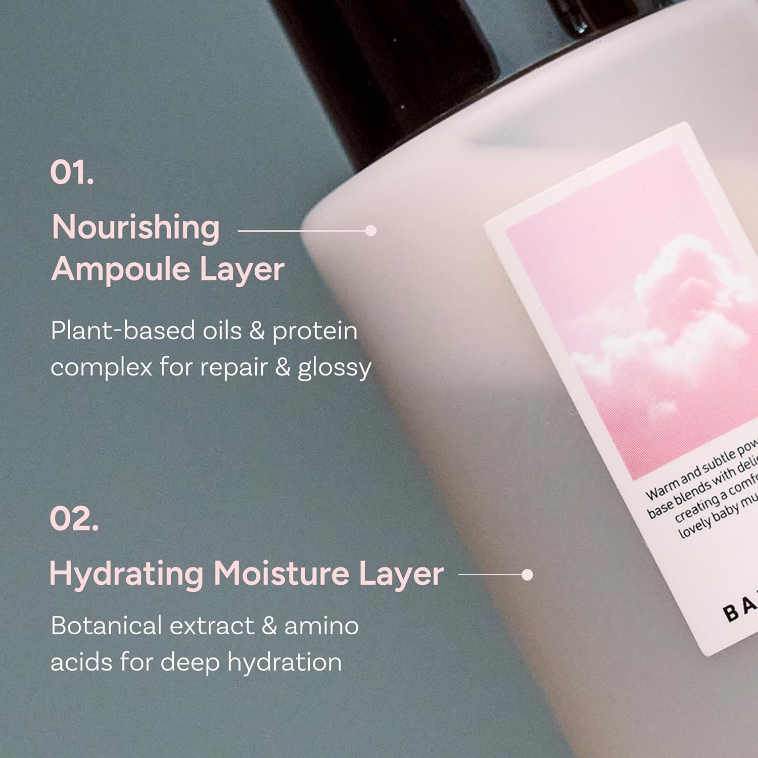 Korean Ampoule Hair Serum Mist with Camellia & Jojoba Oil – Nourishing & Moisturizing Hair Treatment, Frizz Control, Paraben & Sulfate Free, Baby Musk, 100ml / 3.38 fl oz