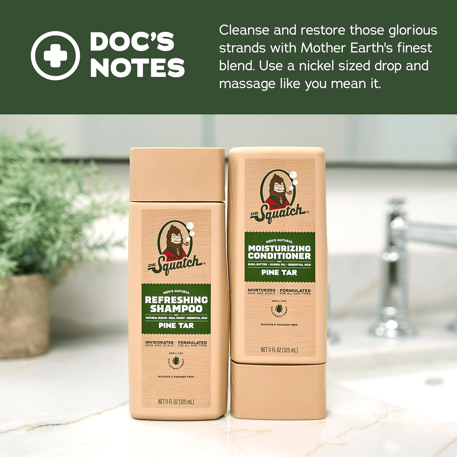 Dr. Squatch Natural Hair Bundle for Men - Healthy, Full Looking Hair - Pine Tar Shampoo (11 fl oz), Pine Tar Conditioner (11 fl oz)