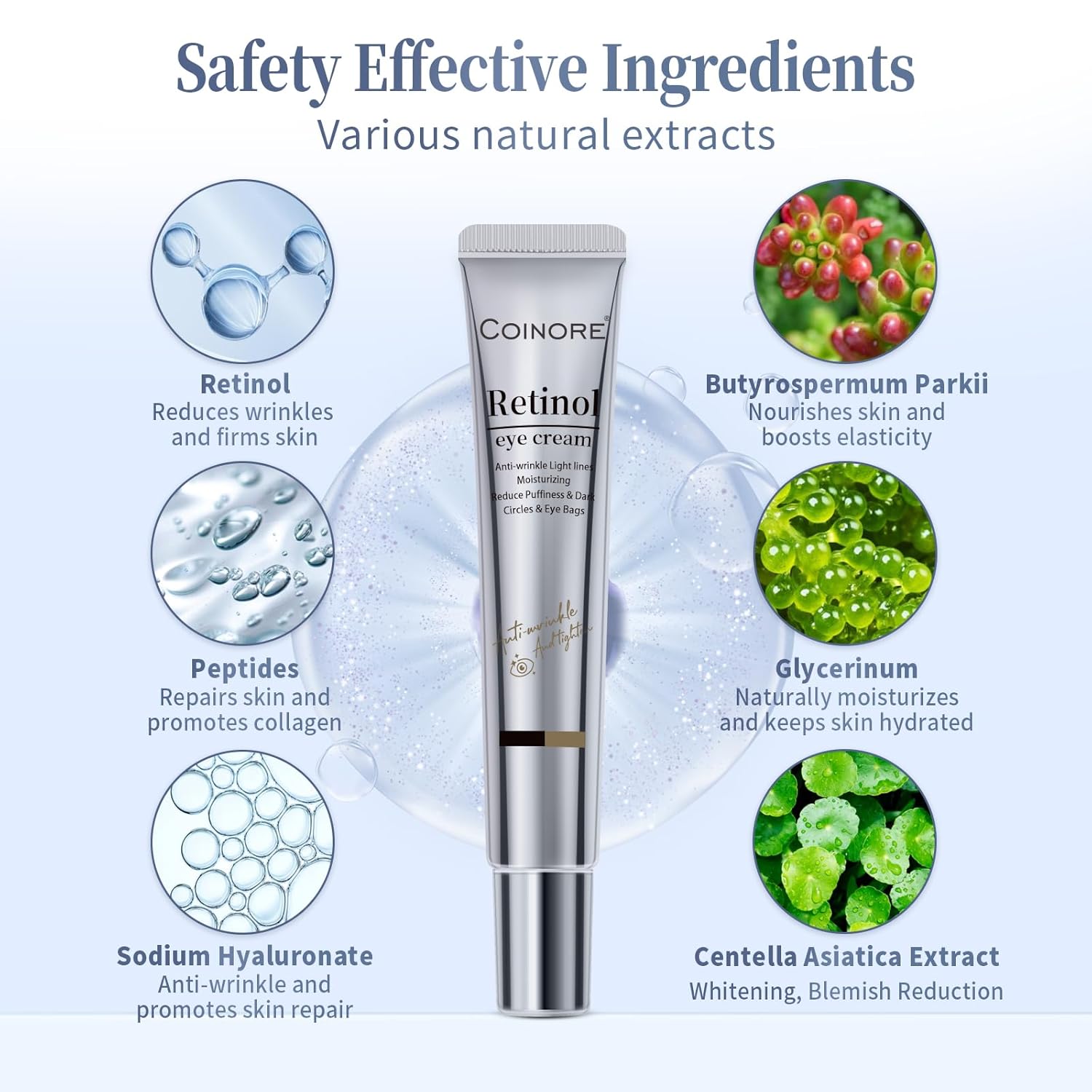 - Cutting-Edge Skincare Technology: Enriched with peptides, this retinol eye cream minimizes irritation and strengthens the skin barrier. It delivers gentle yet effective care for the sensitive eye area, providing instant hydration that leaves the skin feeling soft and supple.