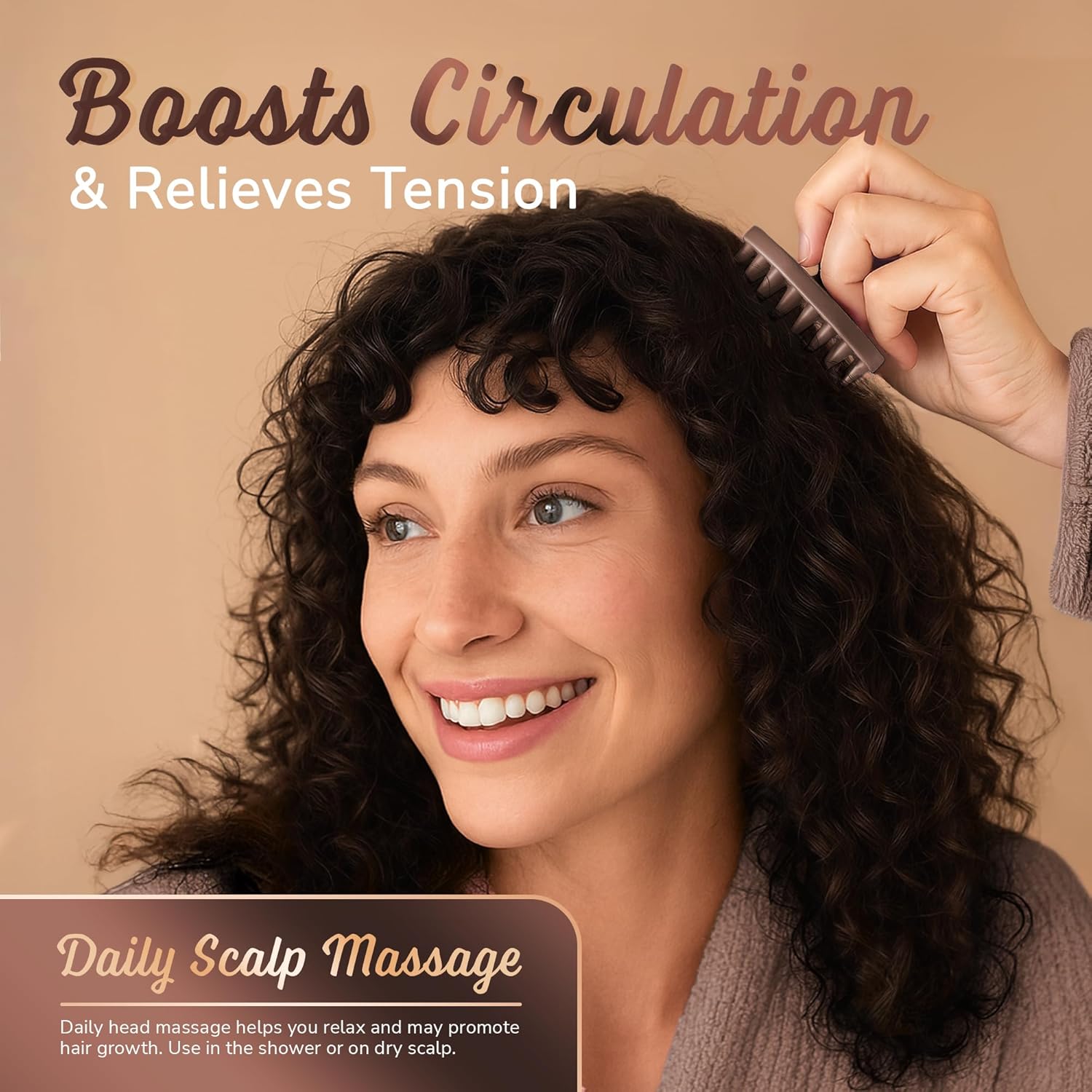 - Non-slip ergonomic handle for easy control — a balanced, palm-fitting grip stays steady in wet, soapy hands and works with either hand, giving you a relaxed, consistent scalp massage every time.