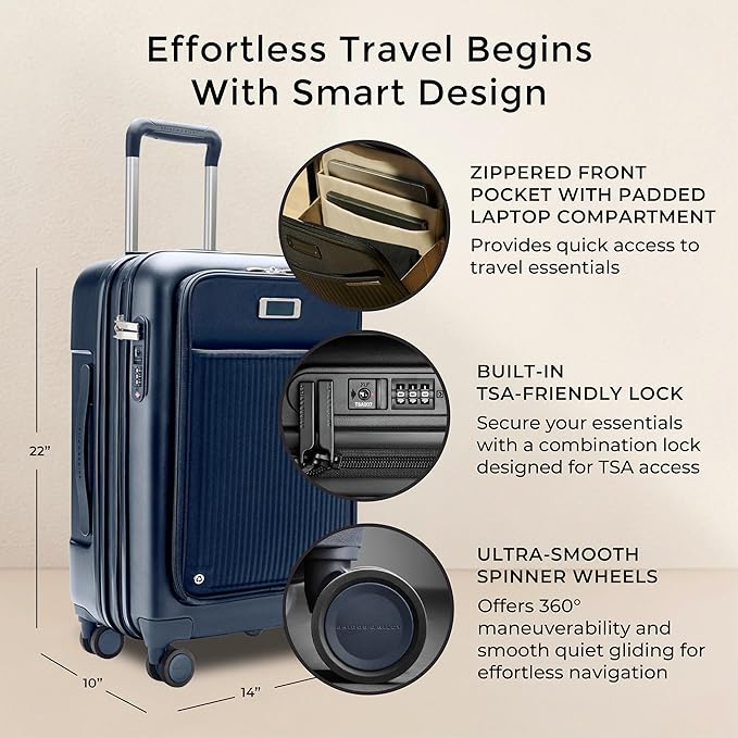 Briggs & Riley Essential 22" Carry-On Expandable Spinner - Carry On Luggage for Travel, Suitcases with Wheels, Hardside Rolling Bag for Men & Women, Front Pocket - Sympatico Collection, Navy