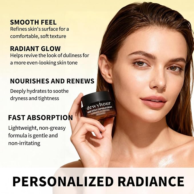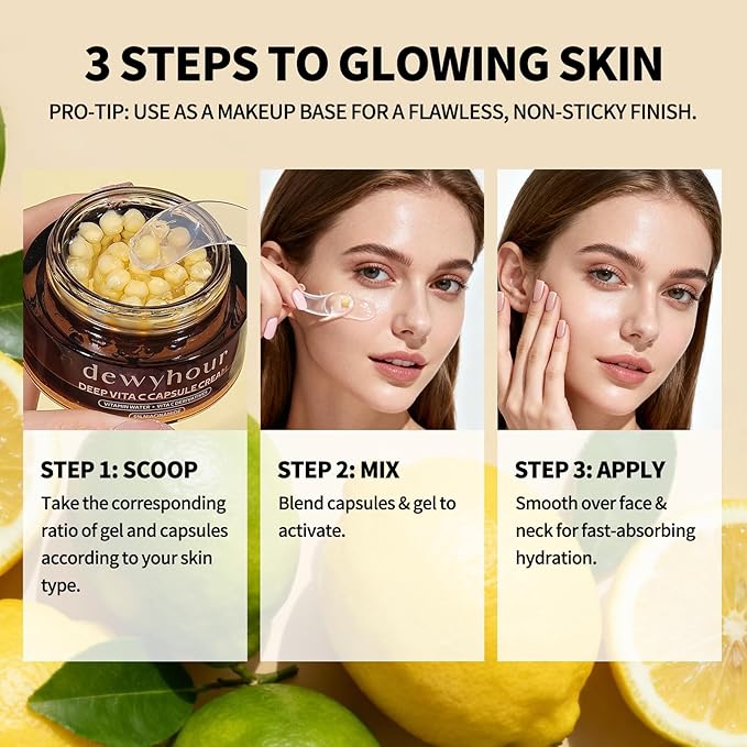 dewyhour Deep Vitamin C Golden Capsule Face Cream, Lightweight Face Moisturizer, Smoothing & Firming, Brightening Glow, Improves Appearance of Uneven Tone, Korean Skincare, For Dry Skin