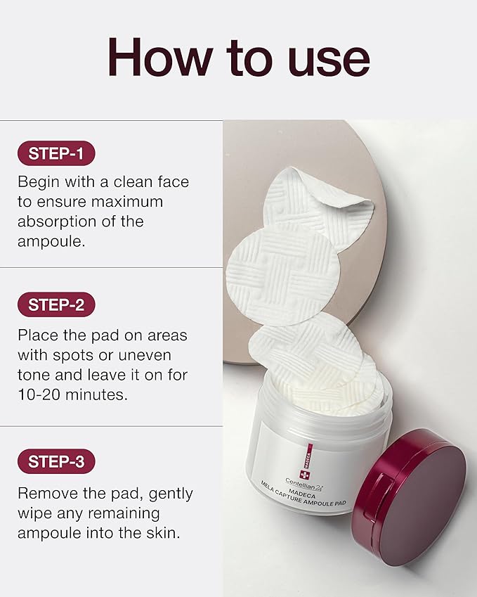 - COMPLETE BRIGHTENING SYSTEM: This 3-step set includes the Mela Capture Ampoule Capsule Cream (55ml), Ampoule Max Serum (0.5 fl oz), and Ampoule Pads (60 pcs) to target dullness, dark spots, and uneven tone.