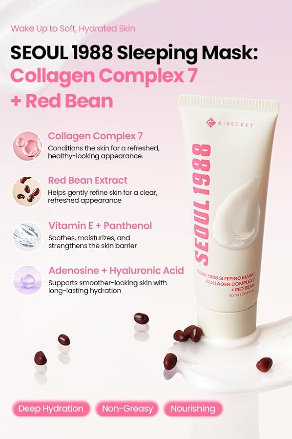 K-SECRET SEOUL 1988 Collagen Sleeping Mask – Overnight Nourishing Care with 7-Type Collagen Complex | Lightweight Facial Night Cream for Glass Skin | Korean Skincare, 60ml / 2.02 fl oz